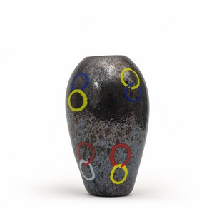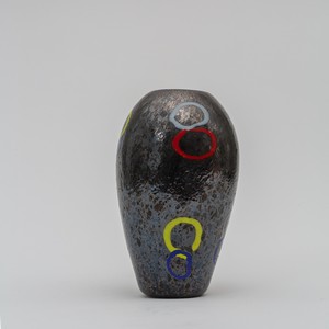 Un vaso 'nerox' con decoro ad anelli colorati sparsi