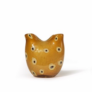 Un vaso a due colli in vetro incamiciato a reazioni policrome con decoro di murrine