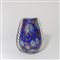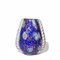 Un vaso in vetro blu incamiciato lattimo con morise in cristallo e decoro di murrine a fiore e