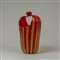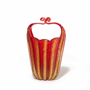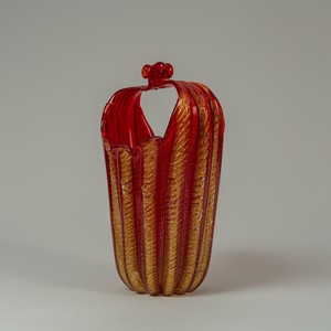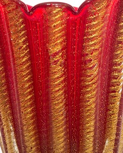 Un vaso in vetro rosso 'cordonato oro' a grosse costolature.