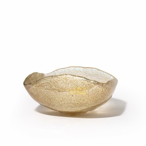 Una coppa della serie 'rugiada' con graniglia applicata a caldo e foglia oro.