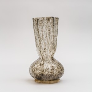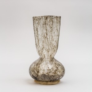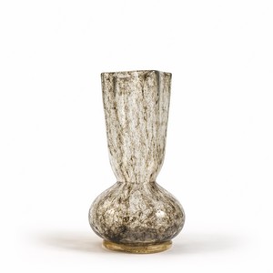 Un vaso 'crepuscolo' con decoro di lana di ferro piede in cristallo e foglia oro.