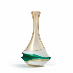 Un vaso in cristallo e foglia oro con decoro di fasce lattimo e verde.
