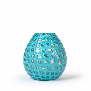 Un vaso 'occhi' in vetro a murrine turchese con nucleo cristallo.