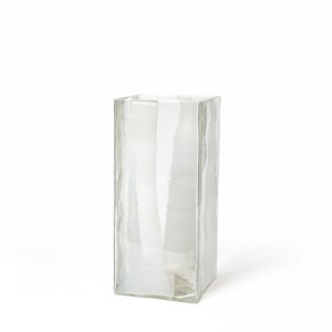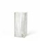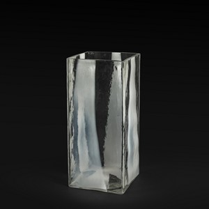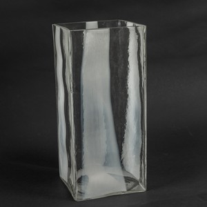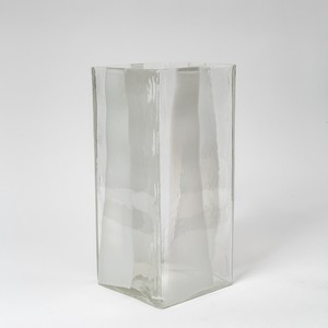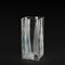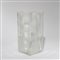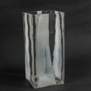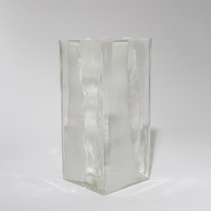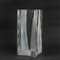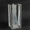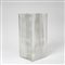 Un grande vaso in cristallo a sezione quadra con fasce verticali lattimo.
