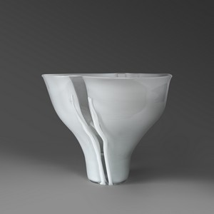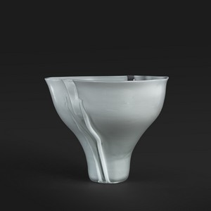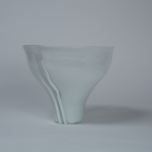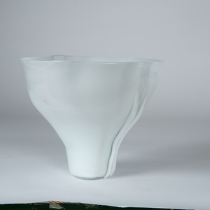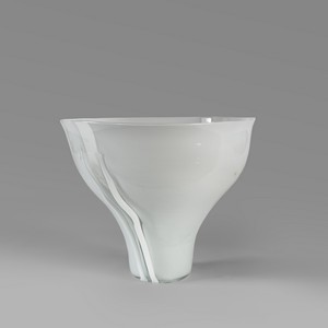 Un vaso 'scolpito' a campana rovesciata in vetro lattimo opaco con due fasce verticali in