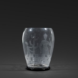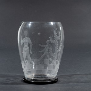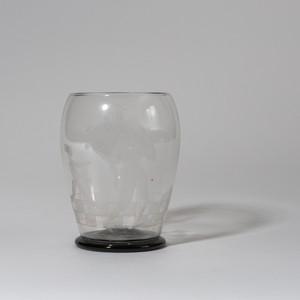 Un vaso in cristallo inciso alla moletta base in pasta vitrea nera