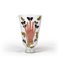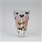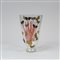 Un vaso in cristallo con decoro di mani e farfalle a smalti colorati.