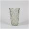 Un vaso troncoconico in cristallo iridato a costolature verticali e applicazione di nastri