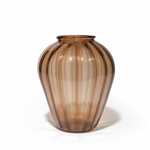 Un vaso costolato in vetro soffiato trasparente ametista chiaro.