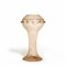Un raro vaso in vetro paglierino soffiato a balaustro con filamenti e morette applicate reca