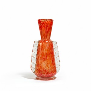 Un vaso a graniglie arancio e bolle regolari con morise in cristallo