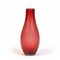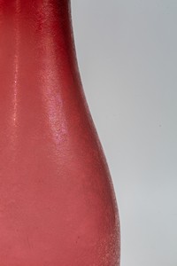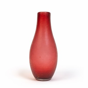 Un vaso in vetro rubino corroso e iridato.