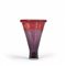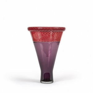 Un vaso a incalmo in vetro ametista con reticello rosso.