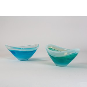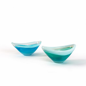 Due coppe in vetro opale verde e acquamare.