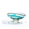 Una coppa ovale in cristallo con decoro a fasce colorate.