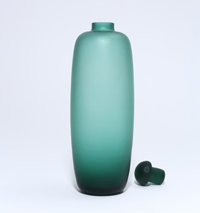 Una bottiglia con tappo in vetro verde velato