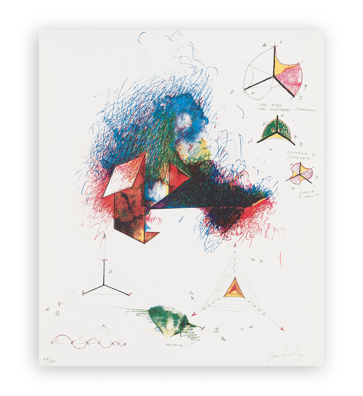 Edizione d'arte composta da un fascicolo recante poesie di numerosi poeti italiani e internazionali e da una litografia di Giò Pomodoro recante firma e numerazione (Esemplare 43/100) a matita al fronte