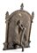 Mezzo busto con aureola a croce di Gesù Cristo benedicente, con globo crucigero nella mano sinistra; in alto, cherubino tra due roselline. Edicola con colonne e tre pinnacoli. Fondo liscio, manico lavorato originale, fusione antica.