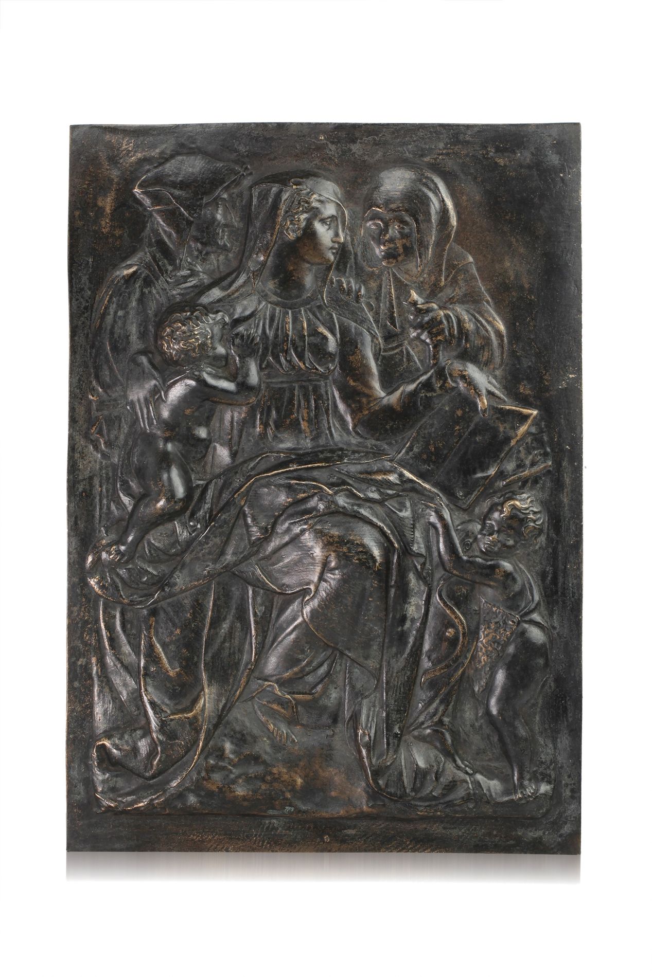 Pierino da Vinci (copia da) (Vinci, 1530 ca. - Pisa, 1553) Placca raffigurante Sacra Conversazione Fonderie italiane, XIX secolo Bronzo patinato nero 41,5x28x3 cm