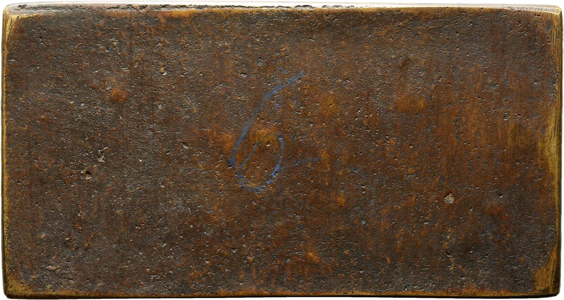 Bronzo fuso rettangolare; mm 125,1 x 66,7; gr 164,9, patina marrone scura