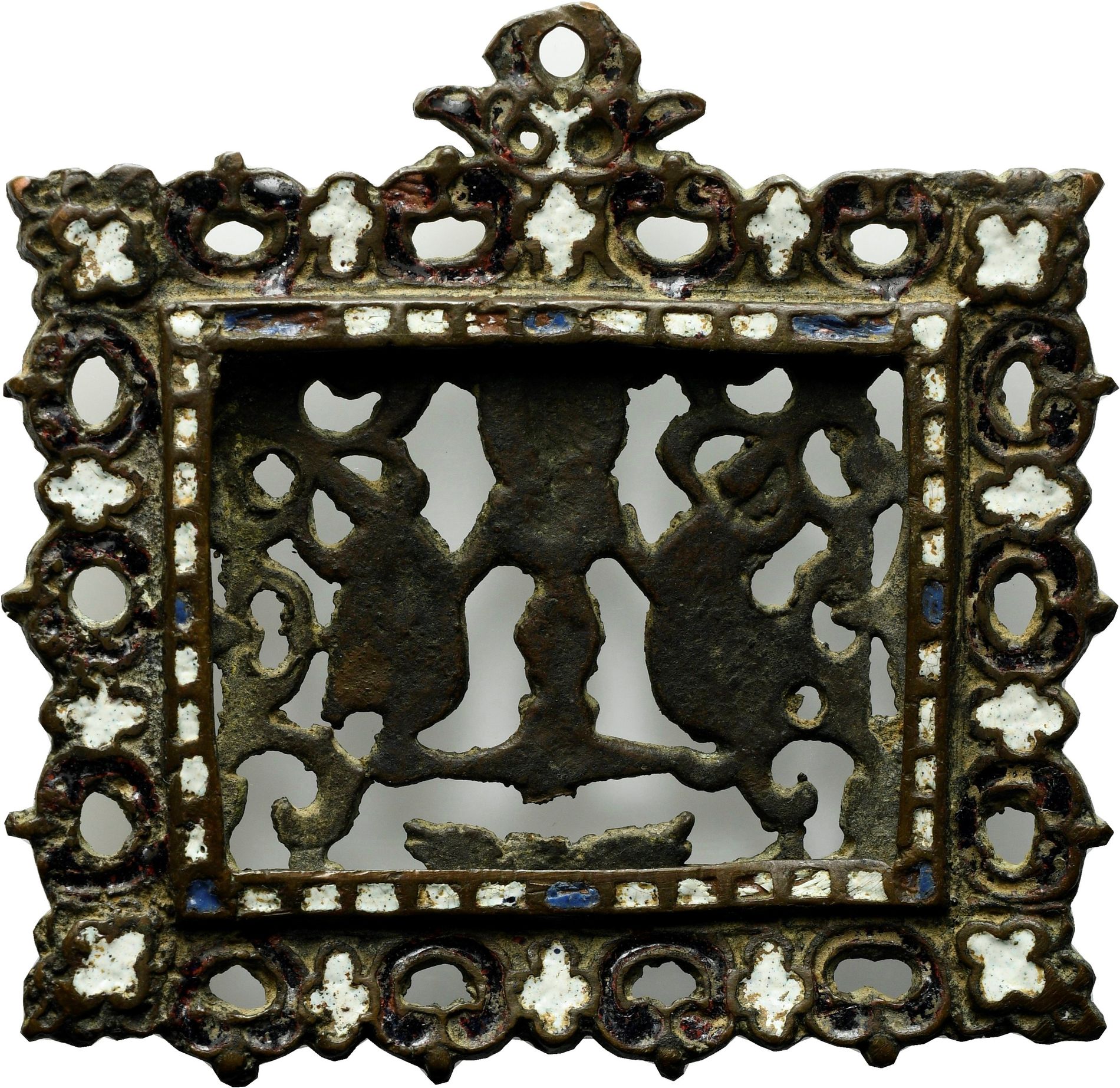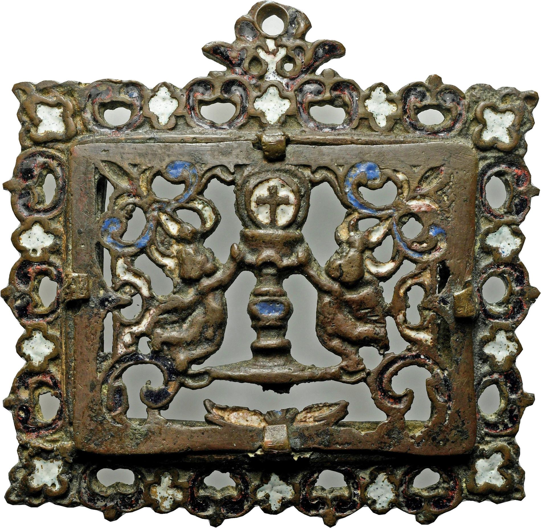 Placchetta traforata con smalti. Soggetto religioso Francia?, sec. XVIII-XIX
