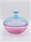 Realizzata in vetro azzurro e rosa con la tecnica dell'incalmo, corpo globulare con breve collo cilindrico