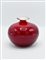 Piccolo vaso globulare con breve collo in vetro opalino incamiciato rosso e bianco