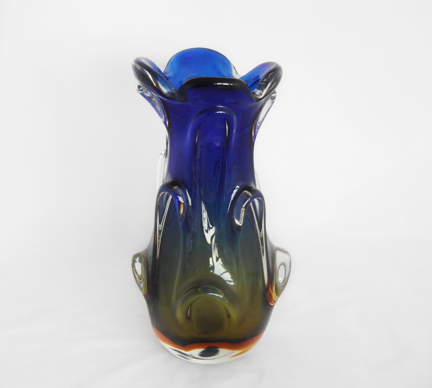 Realizzato in vetro sommerso nei toni del blu, verde e arancione