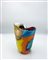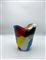 Realizzato a forma troncoconica con apertura superiore pinzata; decoro a tessere policroma, canne di zanfirico, avventurina, grande murena a stella bianca e nera