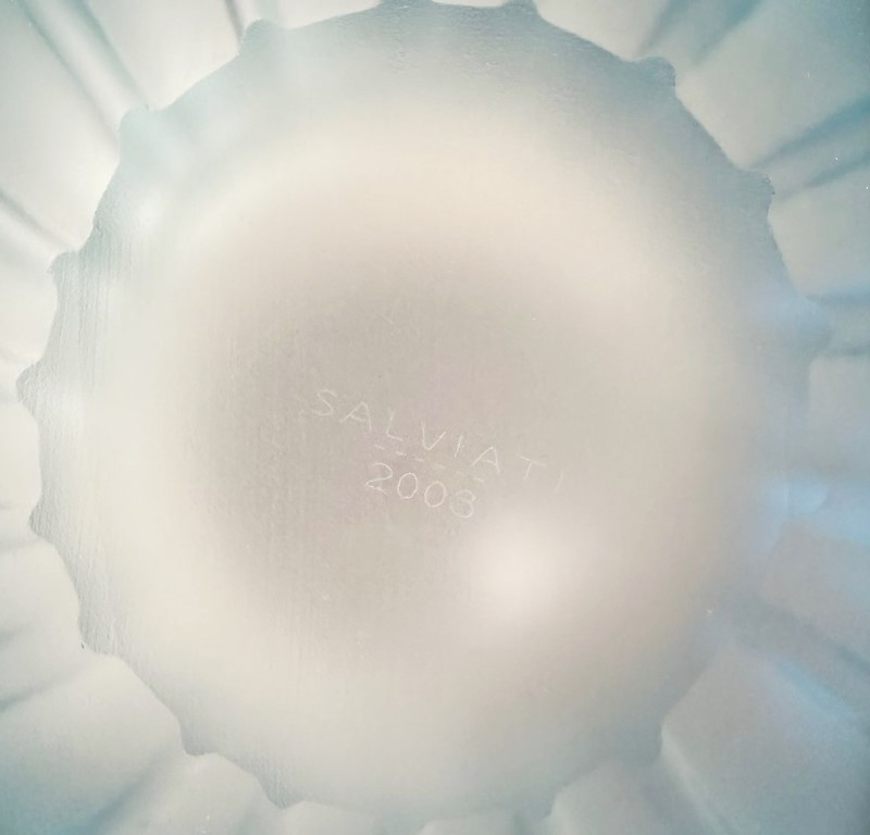 Realizzati in vetro soffiato, a 'rigadin' e sagomati a mano nel tono dell'acquamarina