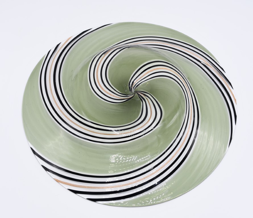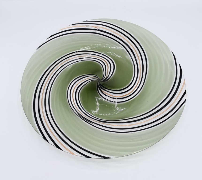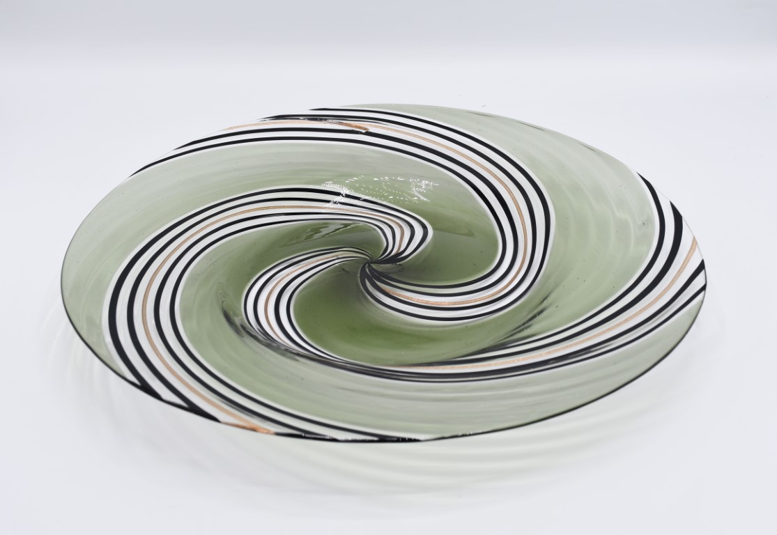 Realizzato in vetro fumè, lavorazione a canne nero e oro con andamento a spirale