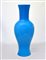 Realizzato in vetro soffiato nei toni dell'azzurro, corpo fusiforme che si restringe verso la bocca e verso la base creando una bombatura al centro