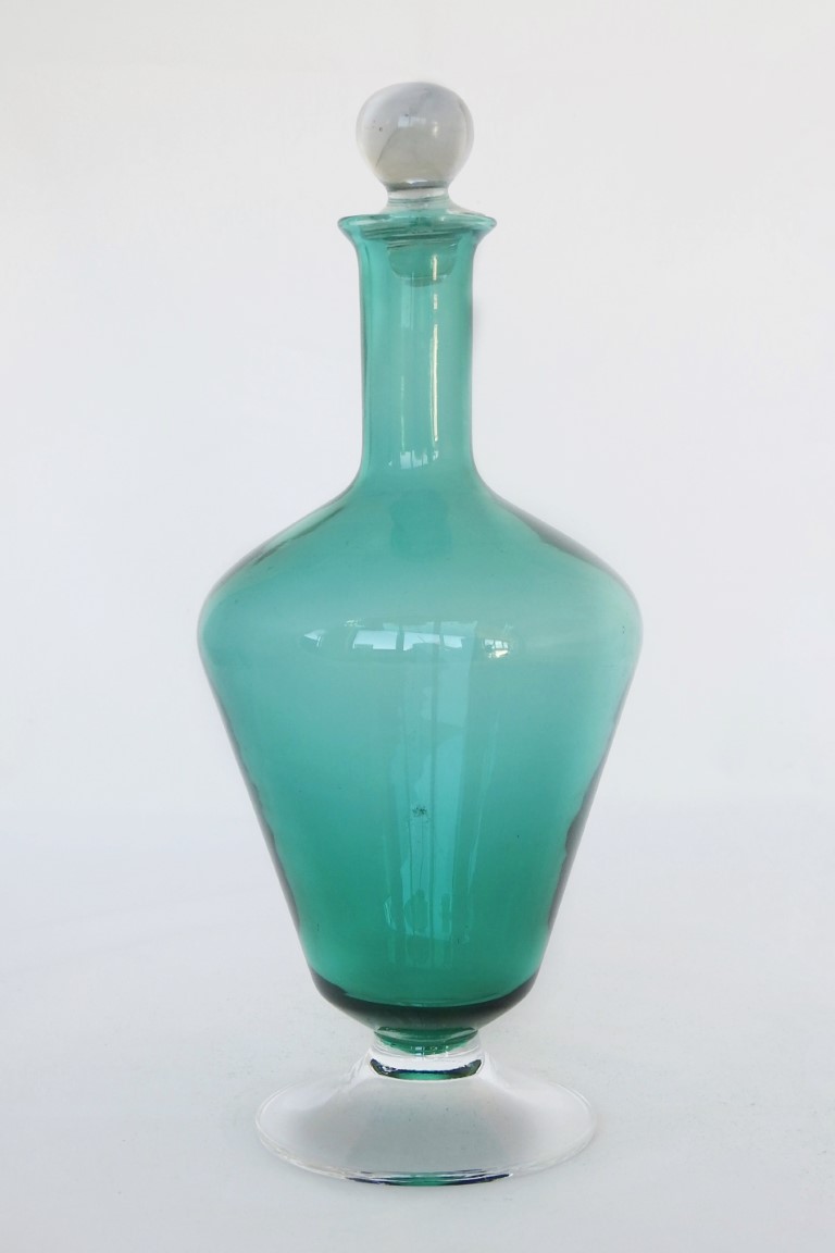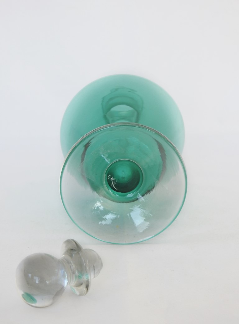 Realizzata in vetro trasparente nei toni del verde petrolio, collo allungato e base d'appoggio circolare in vetro incolore