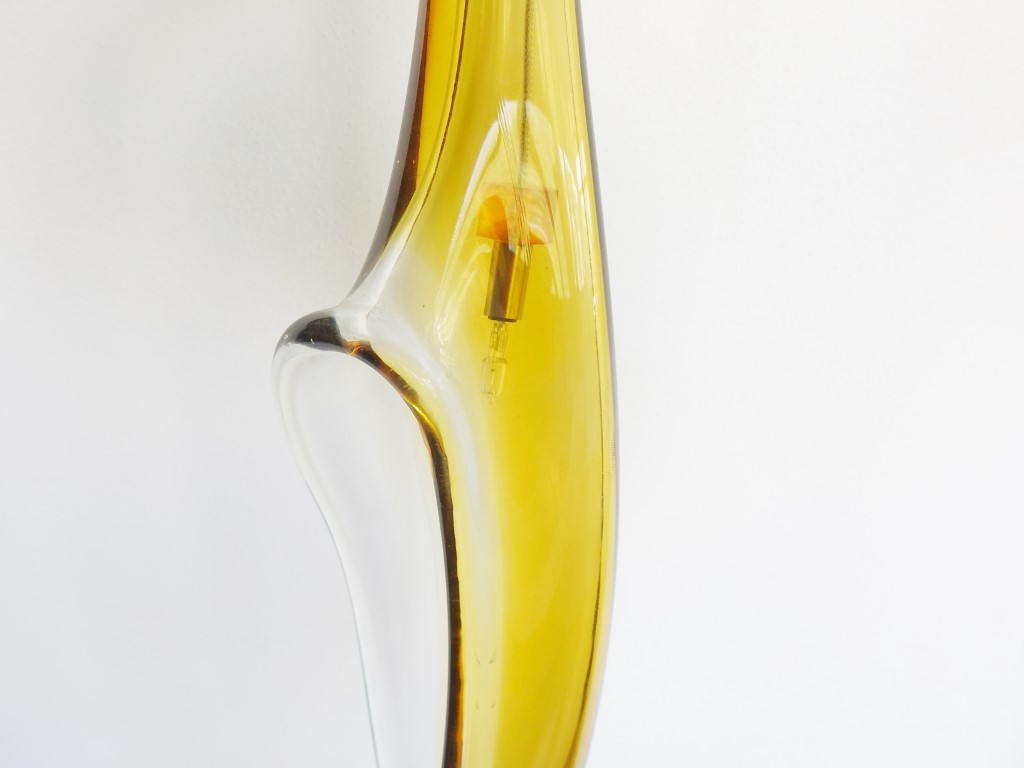 Realizzata in vetro nei toni del giallo ocra a foggia di calla
