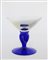 Realizzato in vetro incolore, piattello di forma circolare blu, stelo incrociato blu