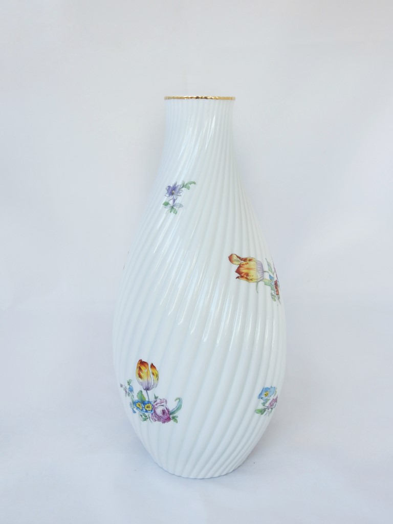 Realizzato in porcellana bianca dipinta a motivi floreali policromi