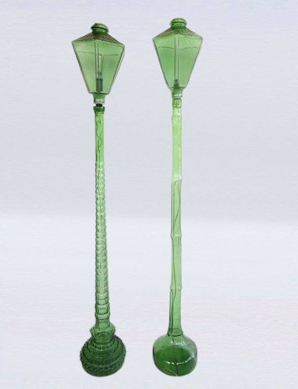 Realizzate in vetro nei toni del verde, diffusori a foggia di lanterna