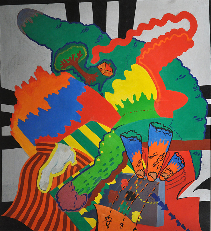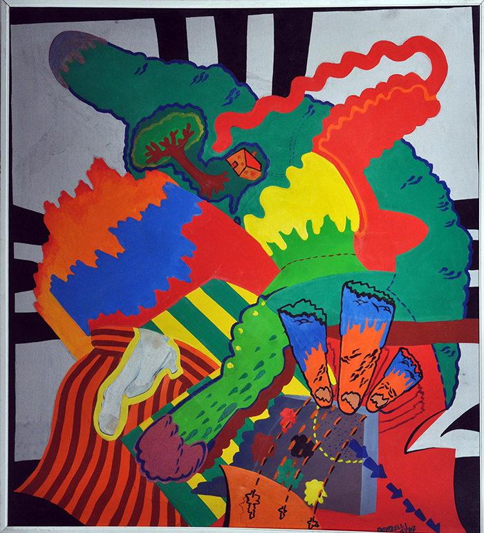 Donzelli Bruno (Napoli 1941) Natura pop della campagna olio su tela, cm 100x90 firmato e datato in basso a destra: Donzelli 1967 a tergo iscritto