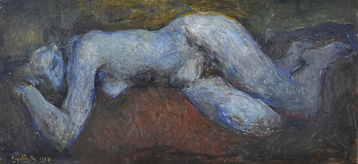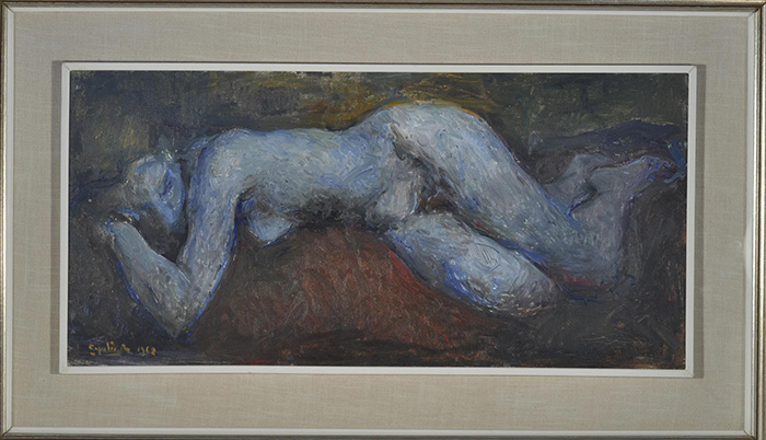 Capaldo Rubens (Parigi 1908 - Napoli 1987) Nudo disteso olio su tela, cm 30x60 firmato e datato in basso a sinistra: R. Capaldo 968