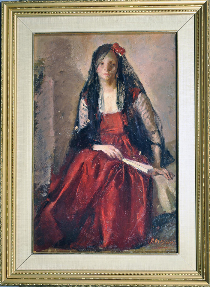 Bresciani Antonio (Napoli 1902 - 1998) Spagnola olio su tela, cm 33,5x50 firmato in basso a destra: Bresciani