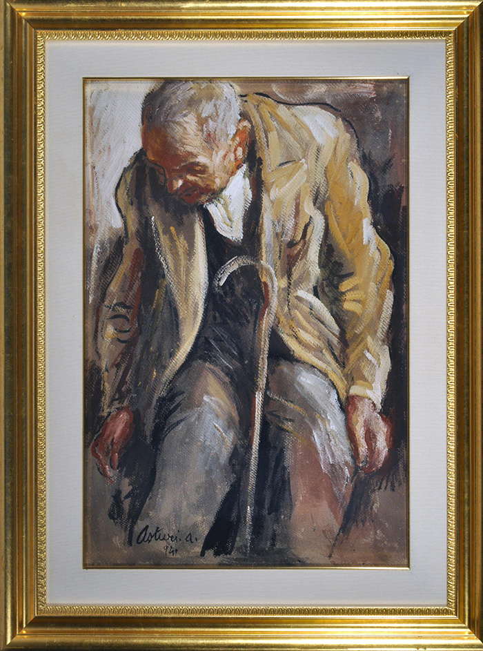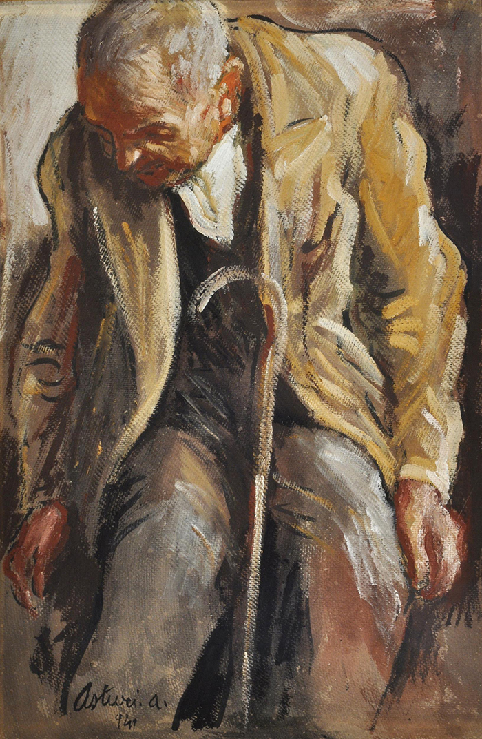 Asturi Antonio (Vico Equense, NA 1904 - 1986 ) Vecchio tecnica mista su carta, cm 60x40 firmato e datato in basso a sinistra: Asturi A. 949