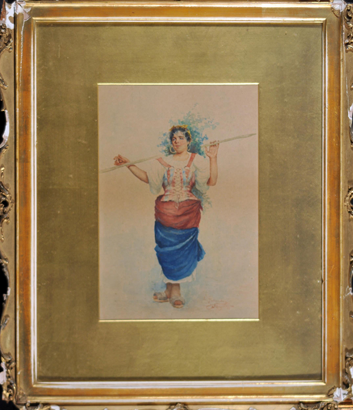 Palumbo Luigi (Napoli 1859 - 1916) Contadinella acq. su carta, cm 24,5x17,5 firmato e iscritto in basso a destra: L. Palumbo Napoli