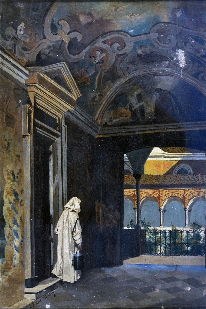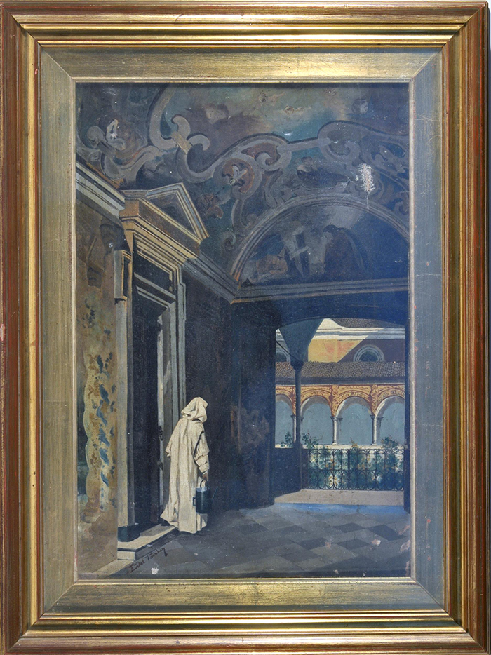 Autore non ident del XIX secolo In chiesa olio su tela, cm 52x35 firmato in basso a sinistra: ...