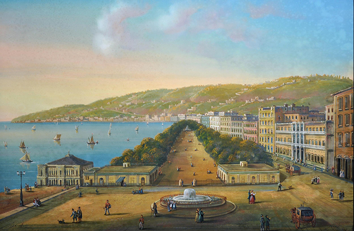 De Vito Camillo (Attivo nella prima metà del XIX secolo) Villa Comunale gouche su carta cm 48x70 firmato in basso a sinistra: De Vito; iscritto e datato in basso a destra: Napoli 1887