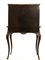 Bonheur du jour in legno ebanizzato con intarsi in rame dorato e madreperla, Francia, Napoleone III specchiature frontali racchiuse da cornici in bronzo dorato con fitta ornamentazione di tarsie in forma di quadrifogli; alzata a due sportelli delimitati da cariatidi in bronzo, un cassetto nella fascia con ripiano scrittoio incernierato a celare un ampio vano, gambe sagomate cm 126x78x47