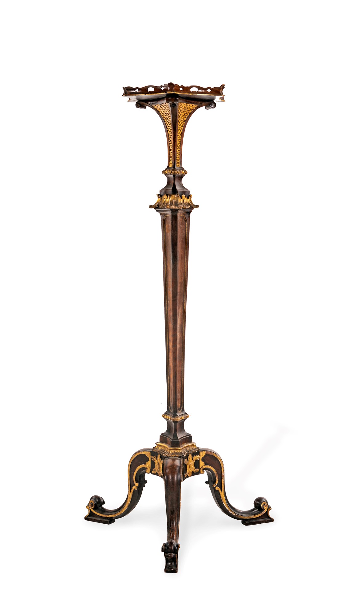 Trespolo in mogano con profili dorati, Inghilterra, inizi del XX secolo