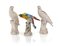 Tre figure di corvo in porcellana, Berlino e Francia ritratti su tronco d'albero; due bianchi ed uno con ali spiegate e piumaggio colorato nei toni del giallo, blu, verde e marrone altezza cm 21 e cm 16 rispettivamente