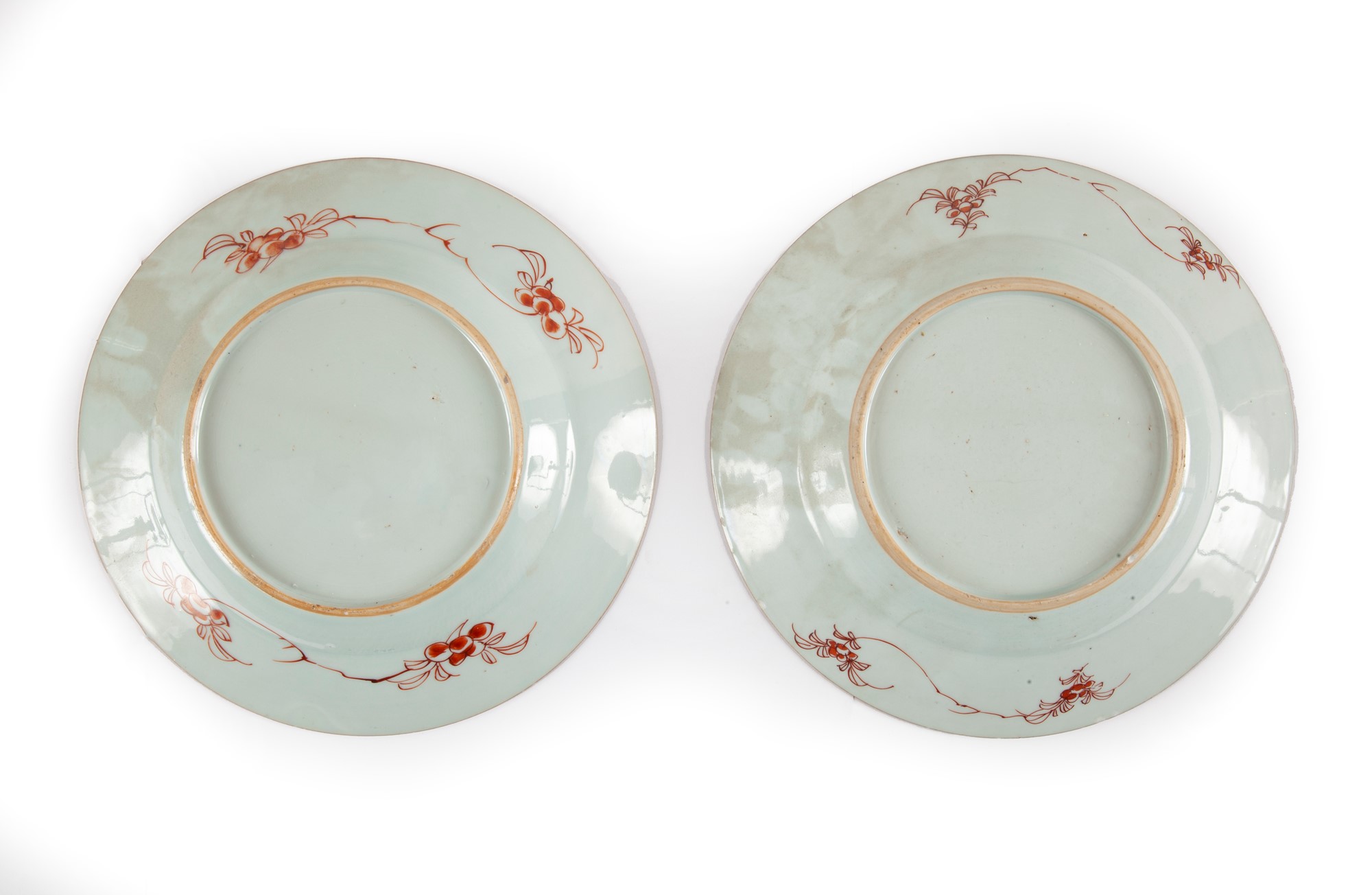 Coppia di antichi piatti in porcellana policroma, Cina, Dinastia Qing