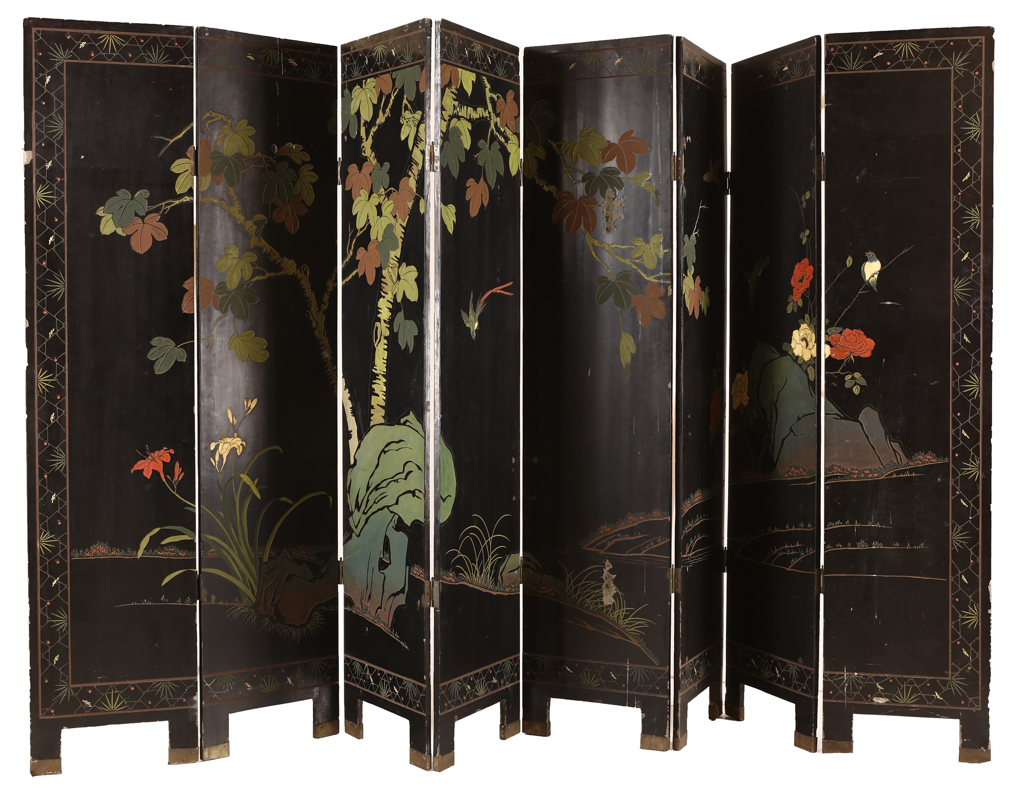 Paravento a otto ante in legno laccato, Giappone, inizi del XX secolo